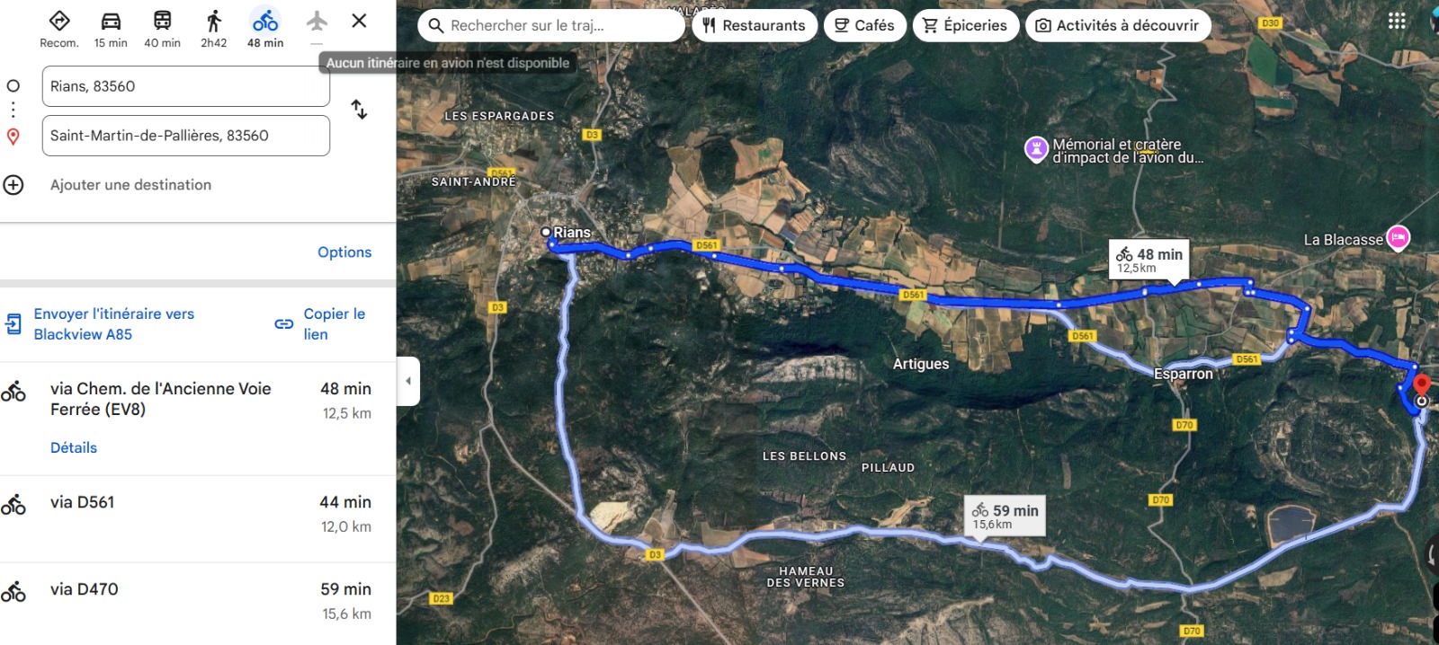 Une sortie vélo pas compliquée à proximité pour le mercredi …. on pourrait faire ça pour pas repasser au même endroit ….Partir de Saint Martin de Pallières, aller récuperer les riansois par l’ancienne voie ferrée et revenir par les vernes (aller par le nord…et retour par le sud!)